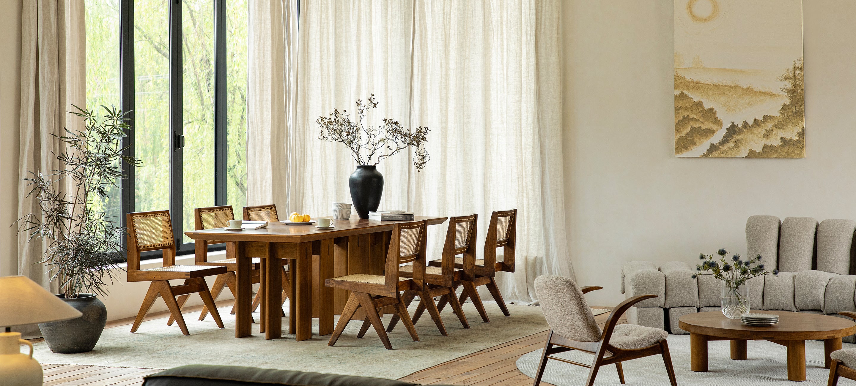 At ZM HOME, we create furniture that brings nature indoors—quiet, grounded, and honest. Our designs begin with materials that hold meaning: richly grained teak wood, breathable stonewashed linen, and handwoven rattan. These are not just materials; they’re memories made visible, chosen for their durability, texture, and warmth.