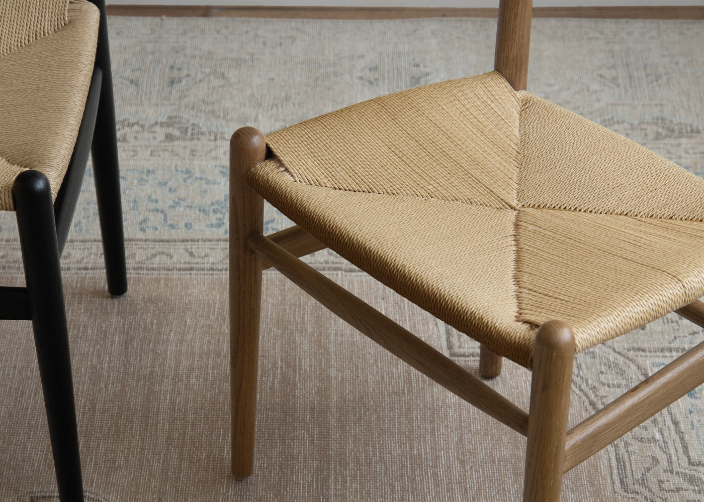 The NO.36 Chair is a 1:1 replica of Wegener's CH36, crafted from red oak with a woven kraft paper seat. Available in natural wood and carbonized black finishes, it’s perfect for dining, tea rooms, and workspaces.