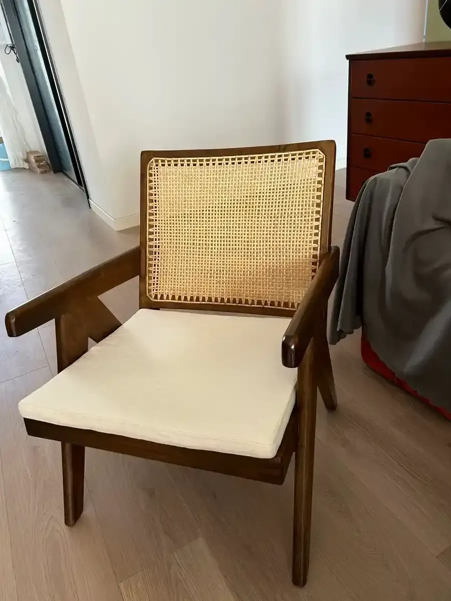 The chair is available in three tasteful colors—natural wood, carbonized black, and vintage—to suit various decor styles, from tranquil and antique to natural and understated luxury. Choose between versions with or without a linen cushion to match your personal style and comfort preferences. Each chair showcases a fine balance of traditional aesthetics and modern design, making it a perfect statement piece for any interior.