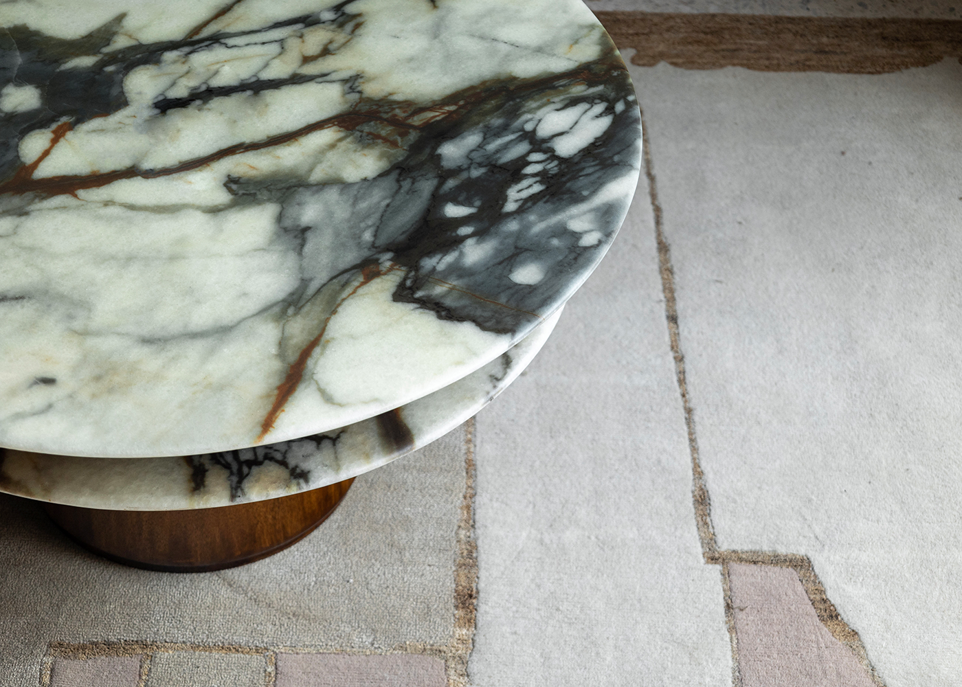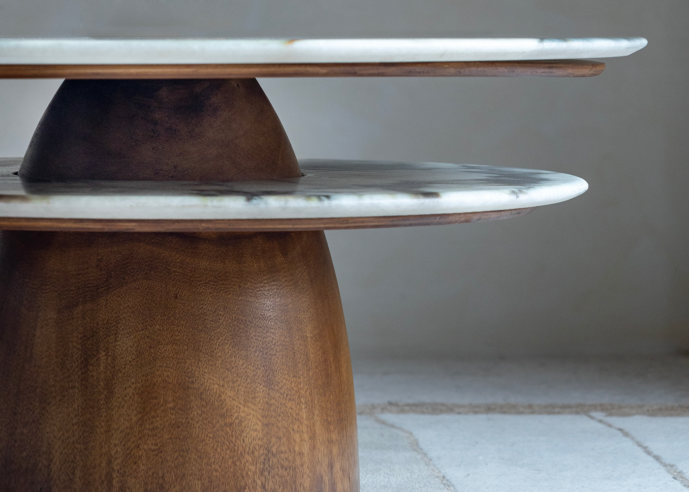 Experience the Dorothy Side Table at ZM Home, showcasing a natural crystal stone tabletop with sustainably sourced rainwood base, where unique gradient veining and organic forms create a mesmerizing play of light that embodies the perfect equilibrium between luxurious materials and functional artistry.
