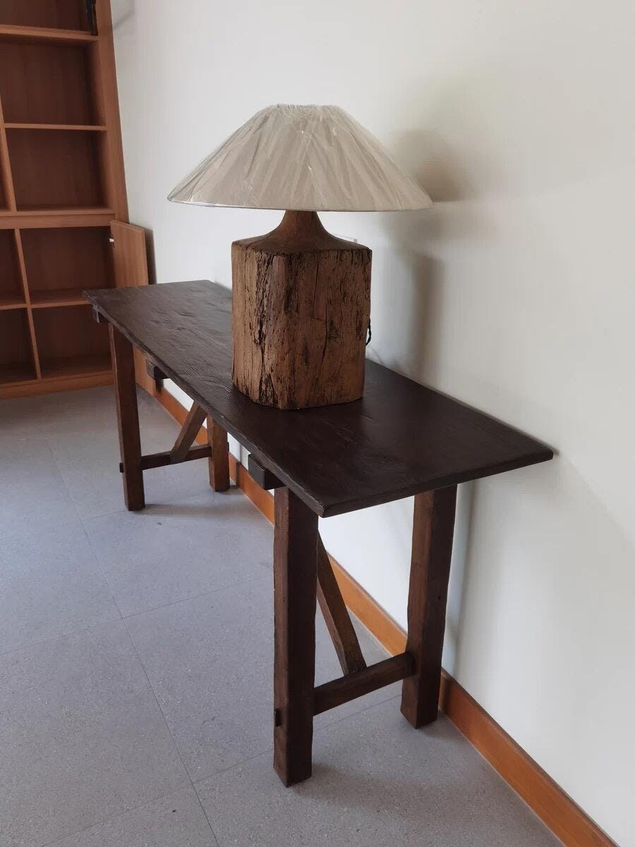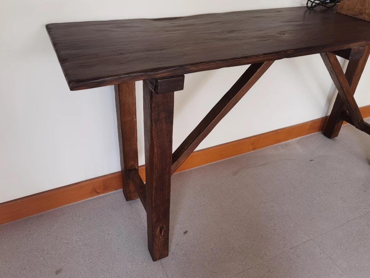 Each piece is unique, and the variations and imperfections of the reclaimed pine add to its unique character. Perfect for adding a touch of eco-friendly elegance to your home decor, this table combines functionality with sustainable design. Feel the beauty of reclaimed wood with this extraordinary console table, where every detail tells a story.