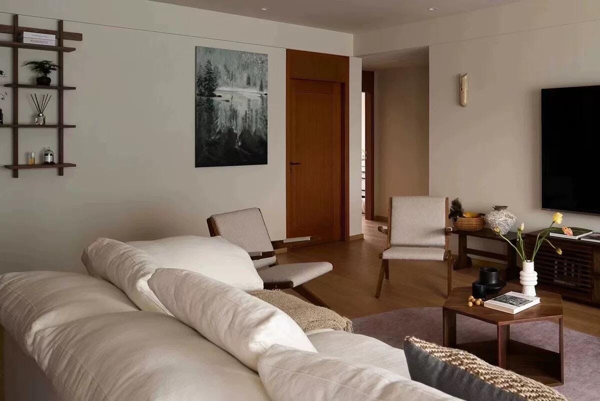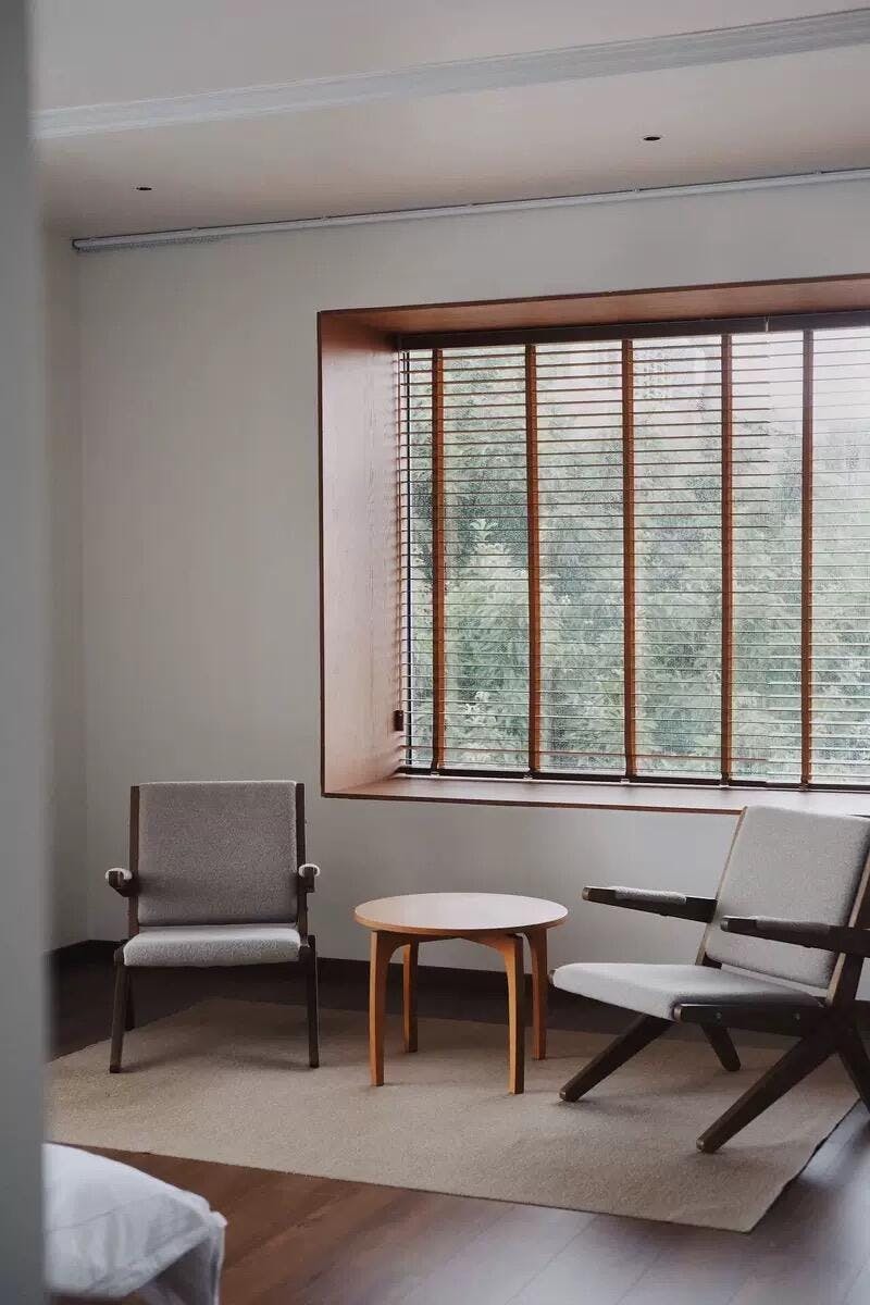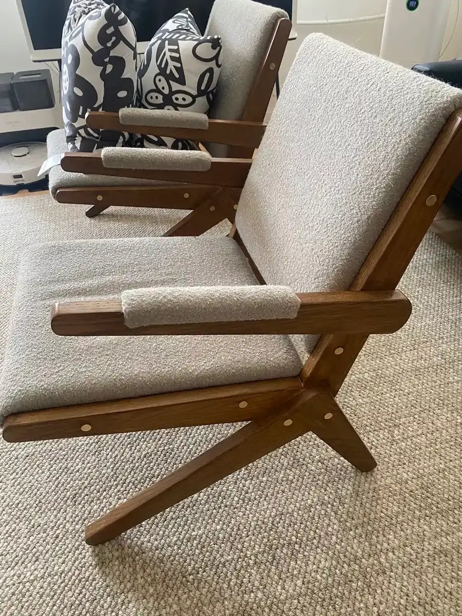The Scissors Chair features a unique scissor-like leg structure crafted from red oak. Available in light and dark colors, it’s perfect for vintage and natural-style interiors.