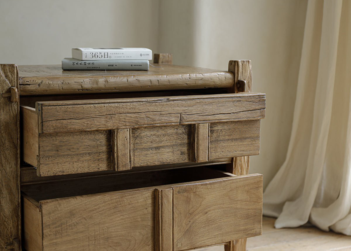 The Treasure Nightstand is a blend of traditional craftsmanship and modern functionality. It is meticulously constructed using traditional mortise and tenon joints, a technique that ensures the structure's stability and durability. These joints, which rely on the precise fitting of concave and convex surfaces, effectively limit the twisting of wooden parts, making the cabinet resilient in various environments.