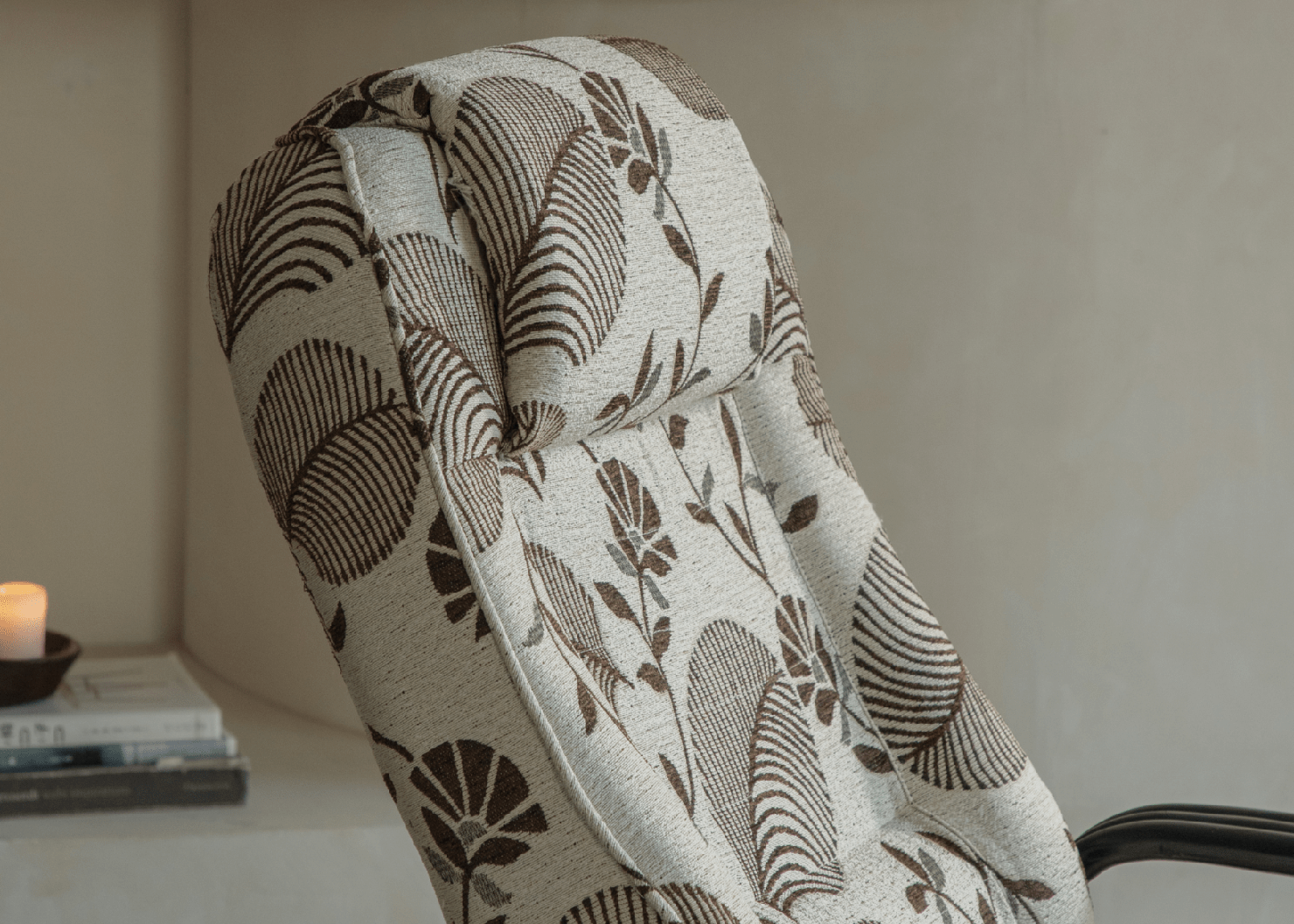 Tall backrest with integrated headrest supports full spinal alignment and neck comfort.
