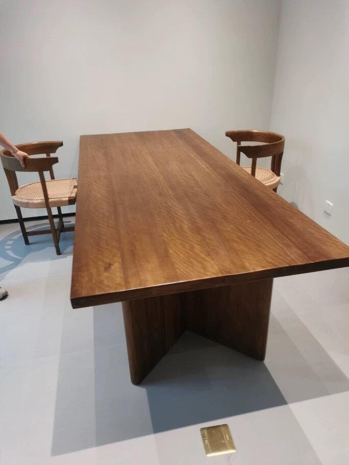 The Zephyr Dining Table, features a minimalist folded leg design and is crafted from naturally aged old wood. Available in three sizes, it’s perfect for various interior styles, offering both beauty and functionality.